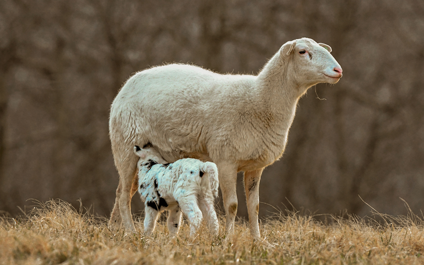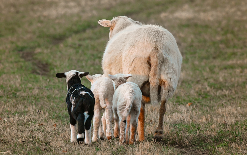 Developed in Maine, Katahdin sheep are a cross between the St. Croix sheep from the Virgin Islands and various English breeds like the Suffolk. Medium-sized, the Katahdin breed’s coats come in different textures and colors. They are low maintenance, hardy, and adapt well to many climates. Popular traits include their quality as a meat sheep, excellent mothering traits (with an average of 2 lambs/gestation), and do not require shearing, saving time, and labor.
